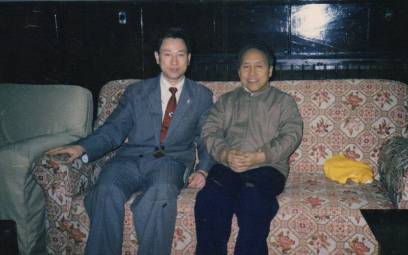1990年6月何天祺院长赴北京参加亚运会期间举办的“中国中医药博览会”百名中医专家特邀门诊期间,与前往交流的台湾中医师邱金炎先生合影。